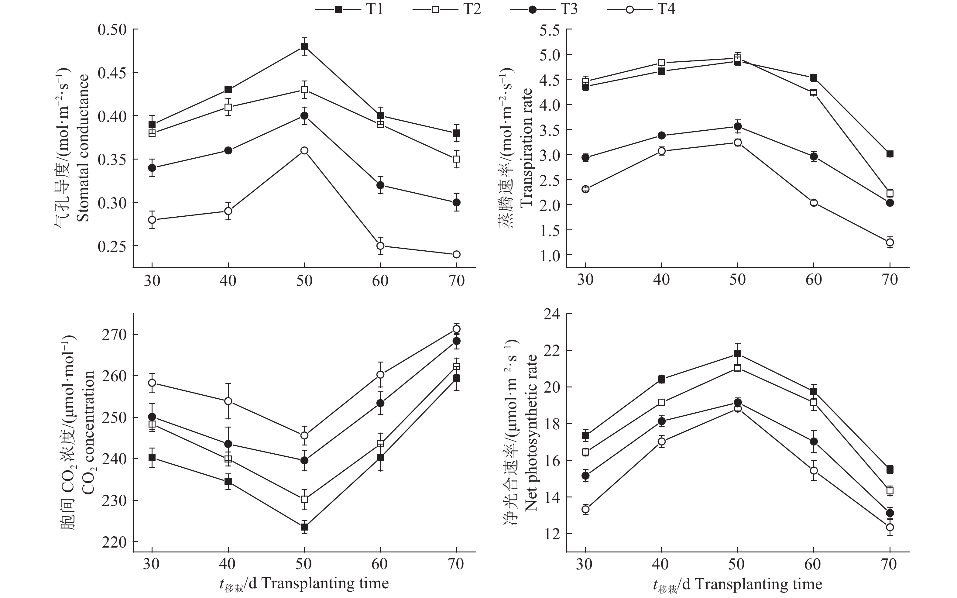 Result On the 50th day after transplanting, compared with tobacco planted in Gushi with local sandy soil and climate condition (T2), the net photosynthetic rate of tobacco planted in Gushi with Maozifeng sandy soil (T1) increased by 3.66%; the contents of total sugar, reducing sugar and starch in middle leaves decreased by 5.74%, 4.77% and 10.73% respectively, and the contents of nicotine, K+ and total nitrogen increased by 6.49%, 11.07% and 11.34% respectively. Meanwhile, compared with tobacco planted in Maozifeng with local sandy soil and climate condition (T4), the net photosynthetic rate of tobacco planted in Maozifeng with Gushi sandy soil (T3) increased by 1.81%, the contents of reducing sugar and nicotine in middle leaves decreased by 10.02% and 13.14% respectively, and starch content increased by 9.30%. The climate had significant impacts on the contents of total sugar, reducing sugar, nicotine , total nitrogen and starch, nitrogen-nicotine ratio, stomatal conductance, transpiration rate, intercellular CO2 concentration and net photosynthetic rate; soil and climate interaction had significant impacts on the contents of reducing sugar, nicotine, total nitrogen and starch, nitrogen-nicotine ratio and stomatal conductance; soil had significant impacts on the contents of K+ and total nitrogen and sugar-nicotine ratio.