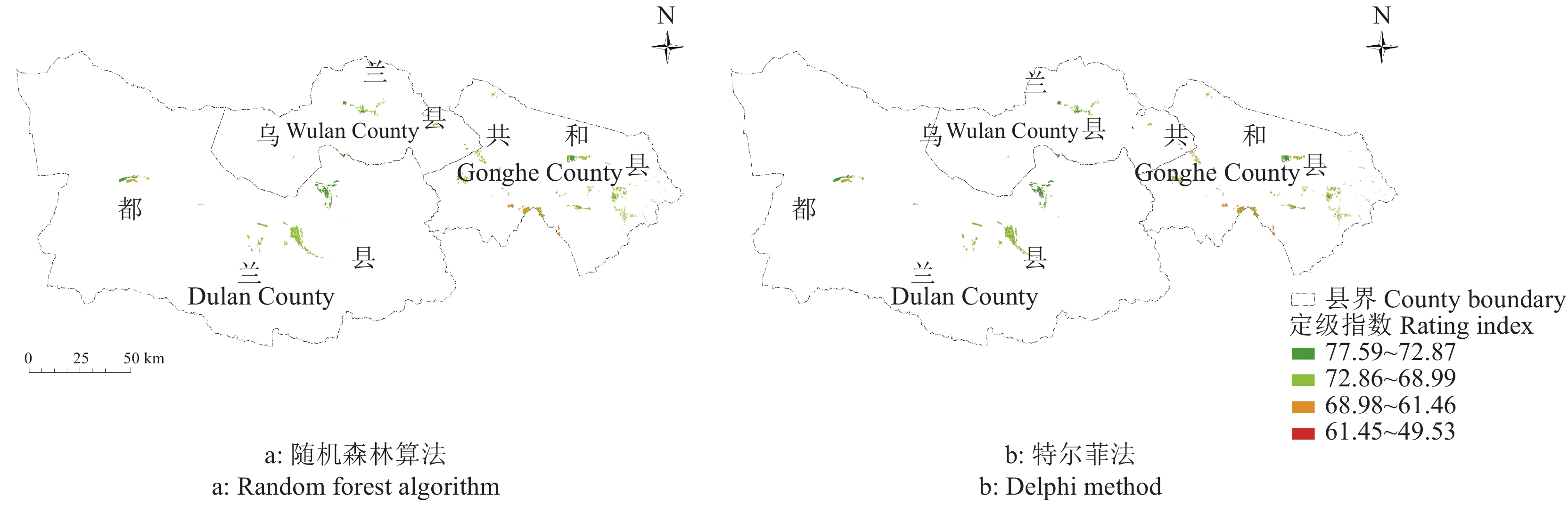 Method Taking the cultivated land in Gonghe County, Dulan County and Wulan County in Qinghai Province as the research object, the influencing factors of cultivated land quality were collected based on the history and existing literature, and the random forest algorithm and correlation analysis were used to screen the grading indicators and confirm the weight. We calculated the grading index and divided the levels by weighted sum method to get the grading result. We compared the results with the grading results of commonly used Delphi method.