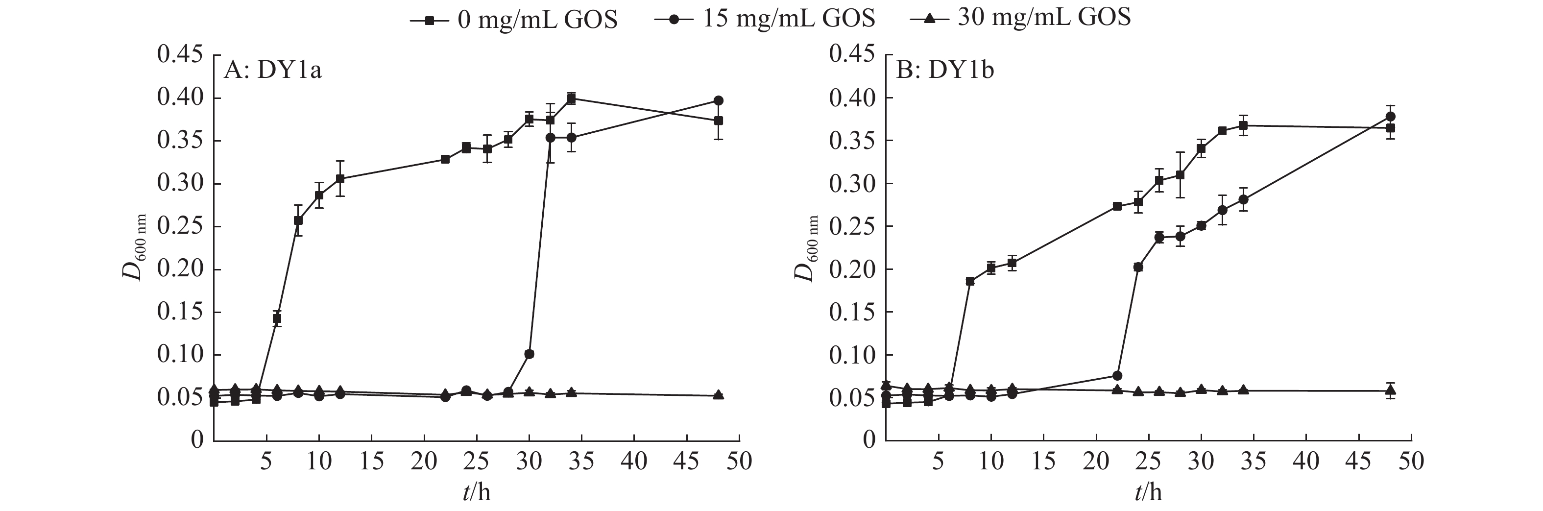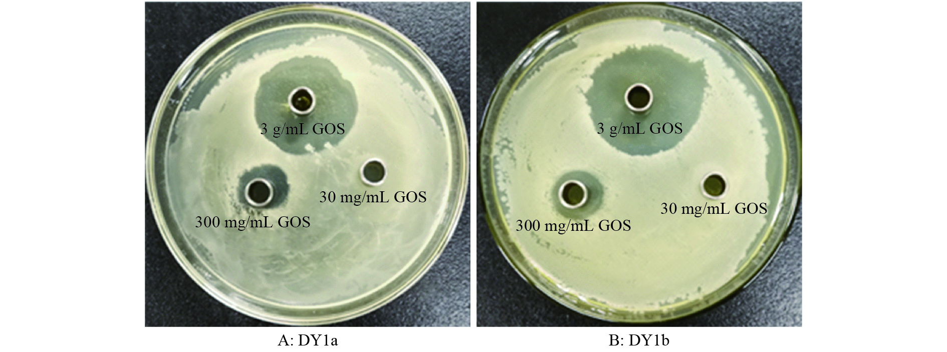 Result Diameter of inhibitory zone of GOS against B. amyloliquefaciens DY1a and DY1b were 31.7 and 25.7 mm respectively, MIC of both strains were 30 mg/mL, MBC were 240 and 480 mg/mL, respectively. The inhibition rate of 30 mg/mL GOS on DY1a and DY1b extracellular protease activity were 47.3% and 15.6% respectively. After treatment with 30 mg/mL GOS, metabolic activity (D490 nm) decreased by 2.771 and 4.091 respectively, extracellular alkaline phosphatase activity increased by 0.029 and 0.036 U/mL, extracellular β-galactosidase activity (D420 nm) increased by 0.047 and 0.016 respectively and the extracellular electrical conductivity increased by 0.060 and 0.031 mS/cm respectively. The results of SEM showed that the surface of bacteria cells treated with GOS had shrinkage, cavity collapse and rupture.