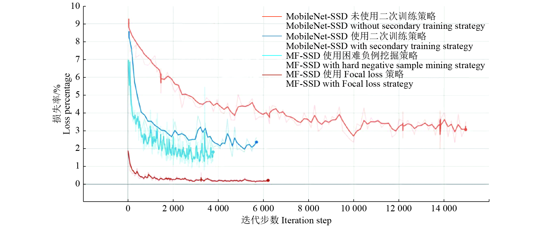 Result The improved SSD model added with multi-layer feature fusion structure could improve the detection ability and recognition speed of network. Compared with VGG16-SSD, the average accuracy of intersection over union increased by 7.2%, the average recall of small target detection of corn silk increased by 19.6%, and the detection speed increased by 18.7%. In the embedded environment having high demand for storage space and run time, MF-SSD-cut-3 obtained shorter run time with smaller storage space in the premise of satisfying detection effect. MF-SSD obtained better detection effect in the condition of taking no account of storage space and run time. The secondary training strategy improved the network convergence speed and model stability. Focal loss effectively solved number imbalance problem of positive and negative samples, and made the training of network model more convergent.