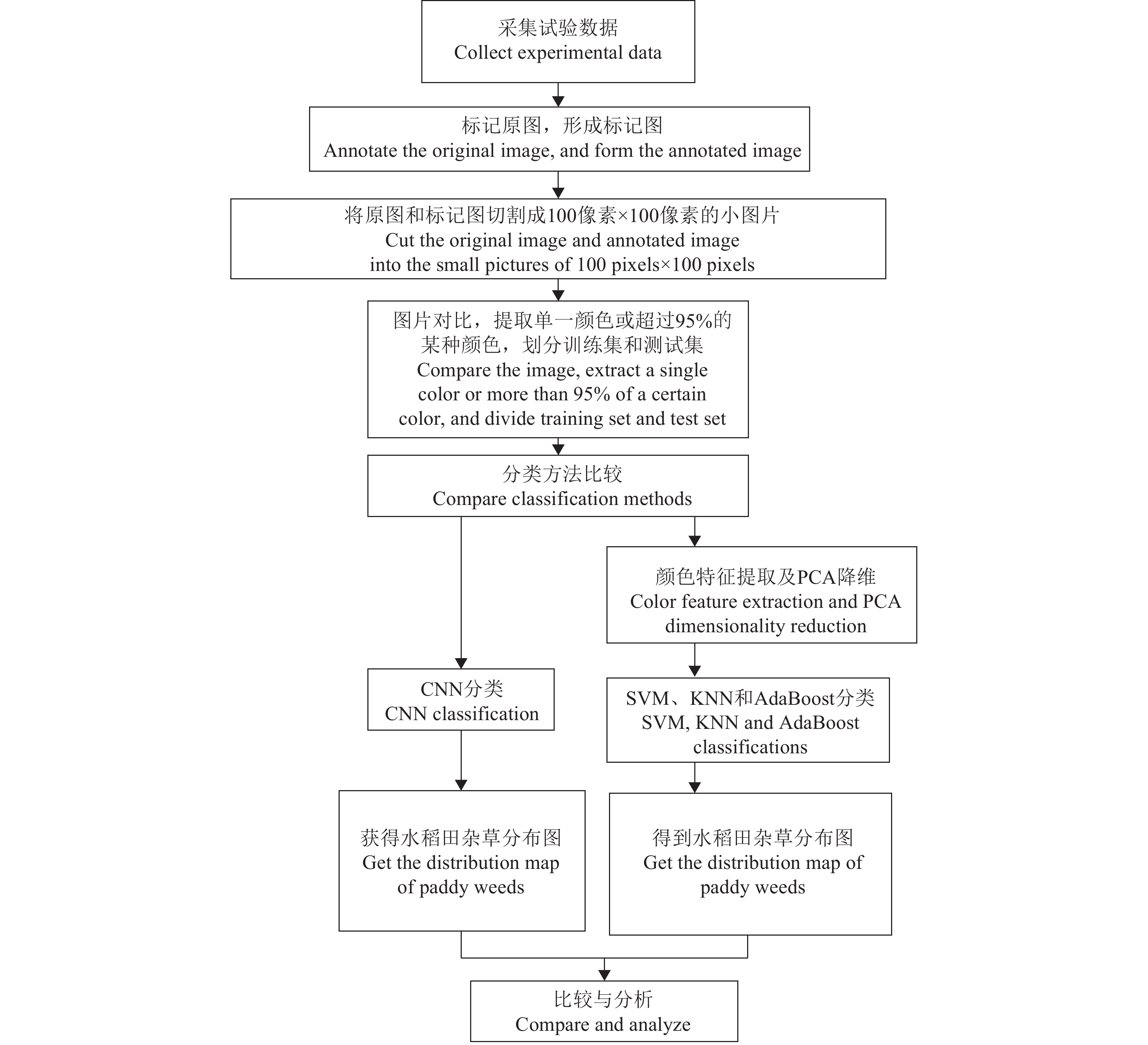 Method Three machine learning algorithms including support vector machine (SVM), K-nearest neighbor (KNN) and AdaBoost were used to classify and compare the weed visible light images in rice field captured by UAV after color feature extraction and principal component analysis (PCA) dimensionality reduction. A convolutional neural network (CNN) which can automatically obtain the image features without feature extraction and dimensionality reduction was introduced to classify the weed images and improve the classification accuracy.