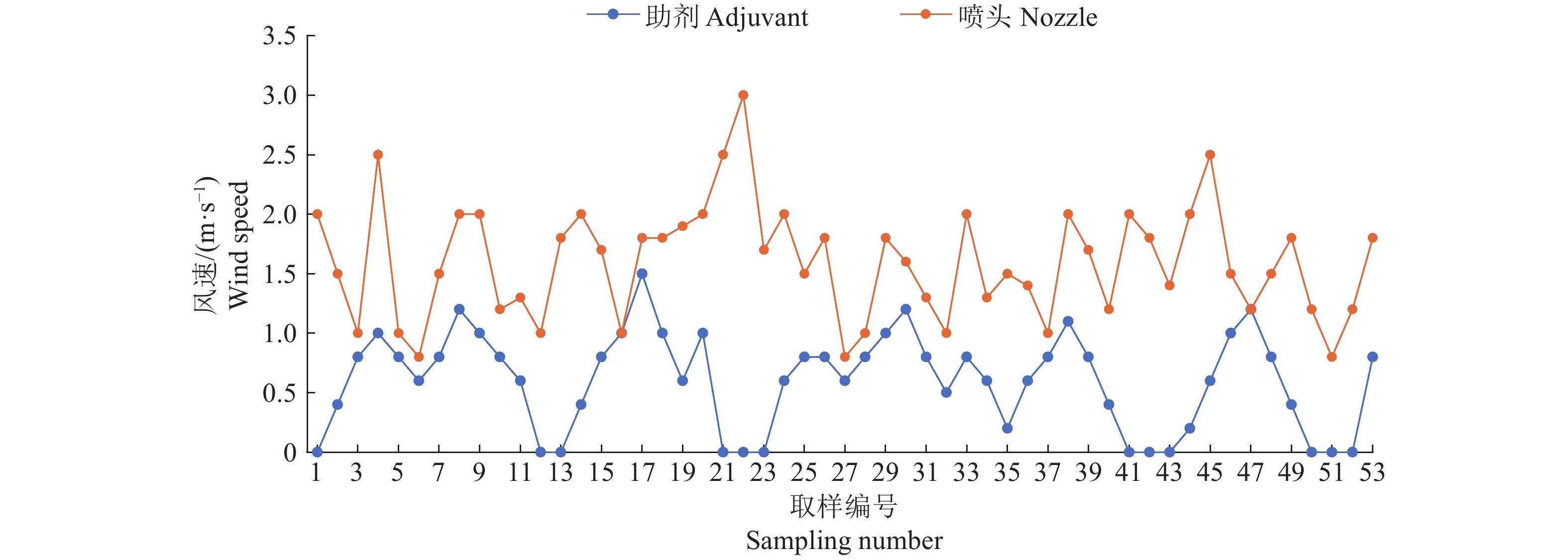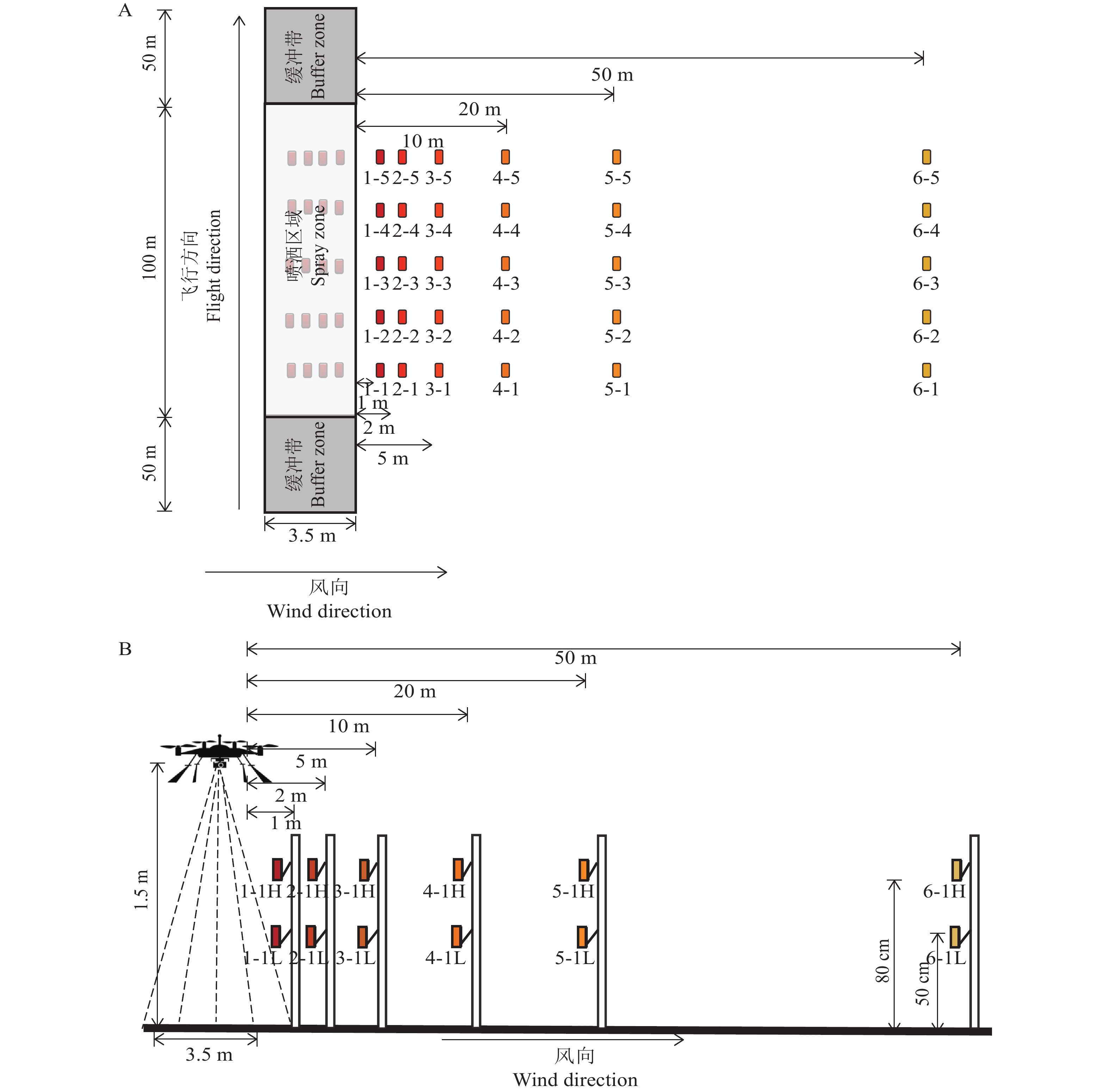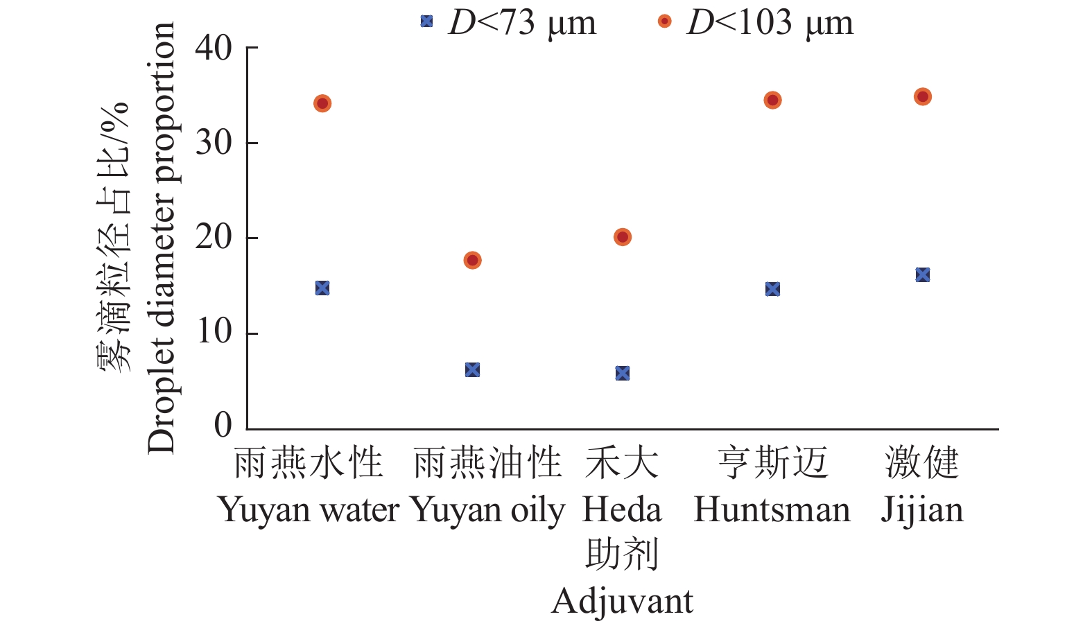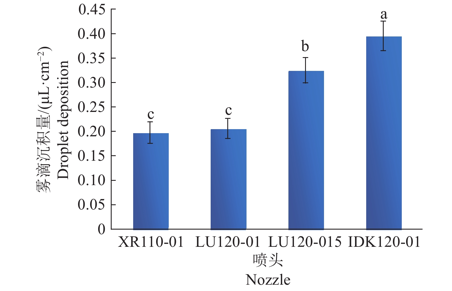 Result In the lab spraying experiments, the solutions of Yuyan oily and Heda adjuvants (φ=1%) showed better effect on increasing droplet size. The IDK 120-01 nozzle increased droplet size most significantly. In the field test, compared with clear water control, all adjuvants reduced drift, most droplets were within two meters of the spraying route. The amount of droplets at 80 cm above the ground was 40%–60% less than that at 50 cm above the ground. Yuyan oily adjuvant had more deposition in the target area. The IDK 120-01 nozzle showed the most deposition in the target area with less droplet number per unit area.