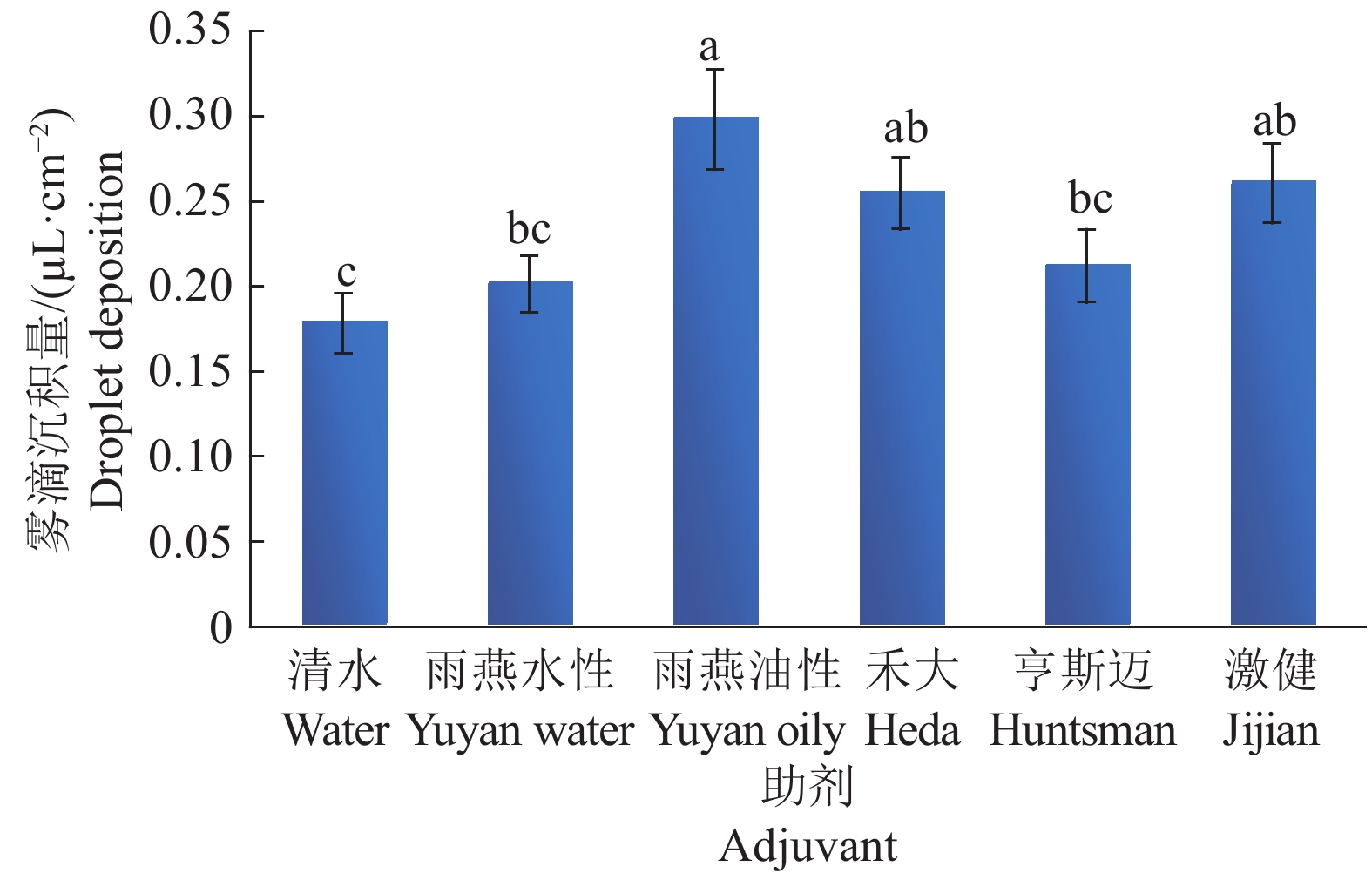 Conclusion Using adjuvants and large droplet size nozzles can significantly reduce drift and increase deposition in the target area. The anti-drift effects of different adjuvants are significantly different.