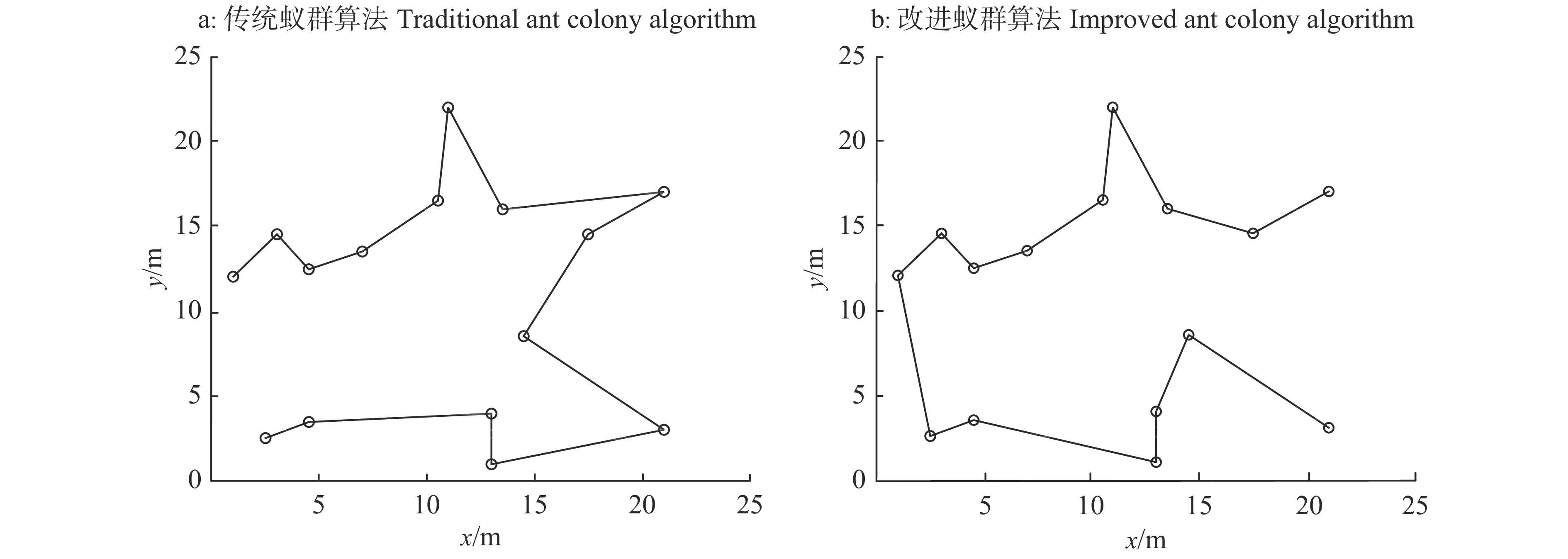 Result The simulation results showed that the number of iterations and path length of the improved ant colony algorithm were 83.1% and 4.8% less than those of the traditional ant colony algorithm. The path repetition rate of the improved ant colony algorithm and the improved BFS algorithm was 56% of the traditional ant colony algorithm and BFS algorithm, and the agricultural robot could achieve 100% coverage of farmland.