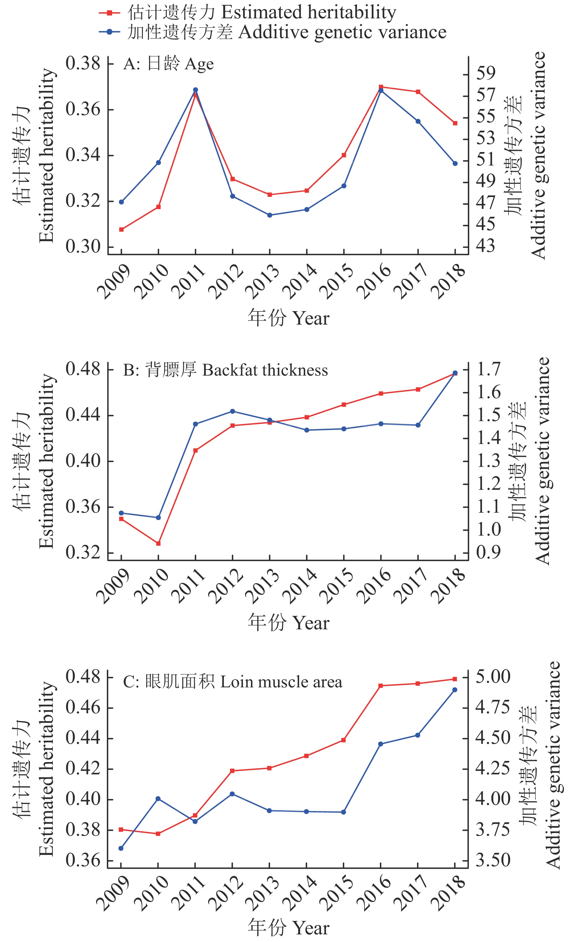 Method A total of 15 760 growth performance records of Duroc pigs were collected in a core breeding field from 2003 to 2018. Using DMUAI module and DMU4 module of DMU software, a multi-trait animal model was used to estimate the genetic parameters and breeding values of three important economic traits. We estimated the genetic parameters of annual accumulative population to evaluate the change of genetic parameters during the long-term selection.