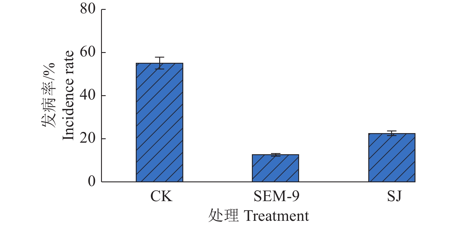 Method The strain SEM-9 was labeled with green fluorescent protein by natural transformation method, and the colonization in rhizosphere soil, on root surface and in root tissue were observed by inverted fluorescence microscope. The changes of microbial diversity in rhizosphere soil treated with the strain SEM-9 were analyzed by high-throughput sequencing using soil with soilborne diseases as test material.