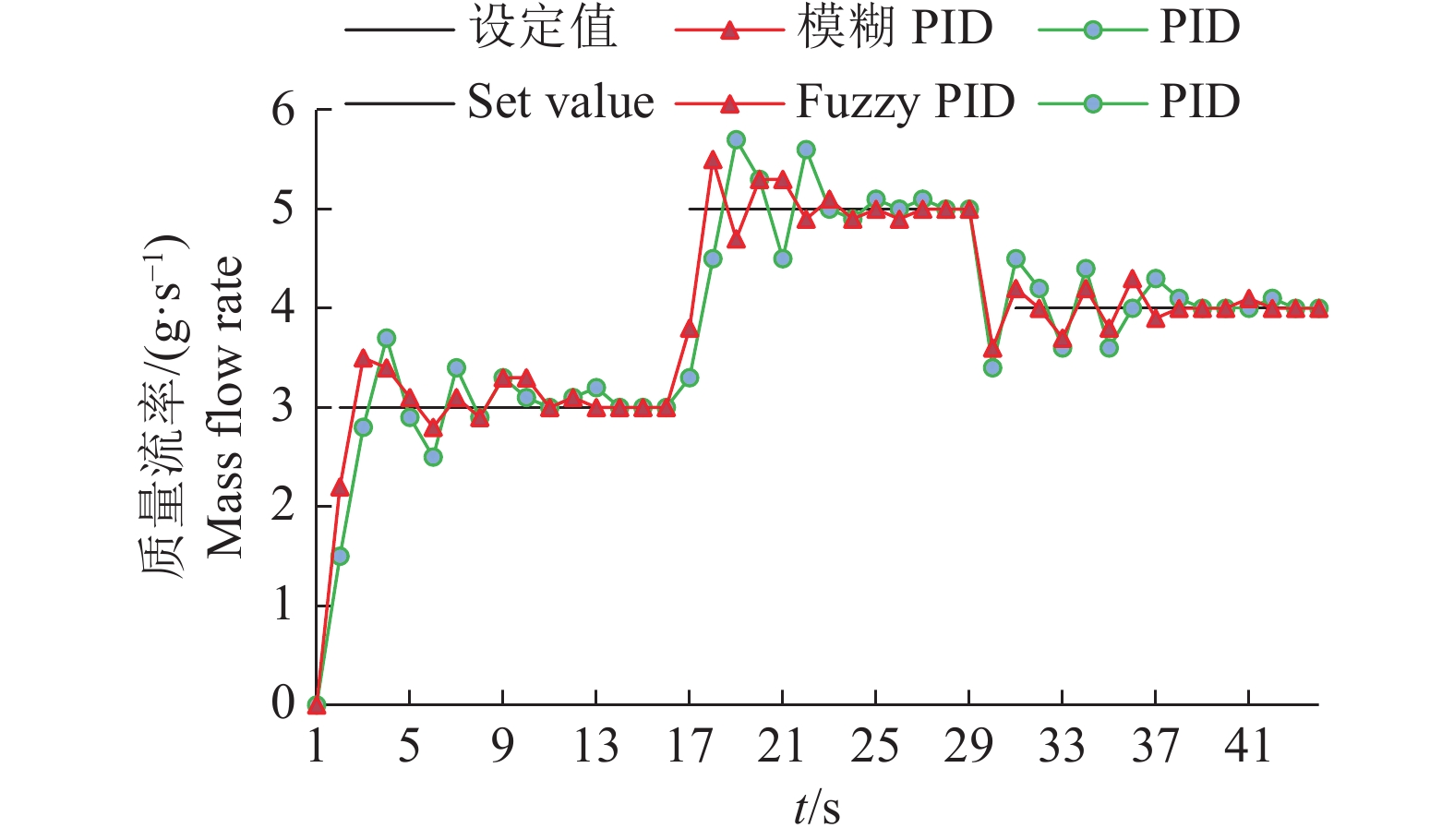 Method The theoretical model of system mass flow rate was calibrated through experiments, and the transfer function model of control system was established. The structure, rules and initial parameters of the PID controller based on fuzzy reasoning (fuzzy PID control) were designed. The regulatory response capabilities of PID control and fuzzy PID control were compared through simulation experiment.