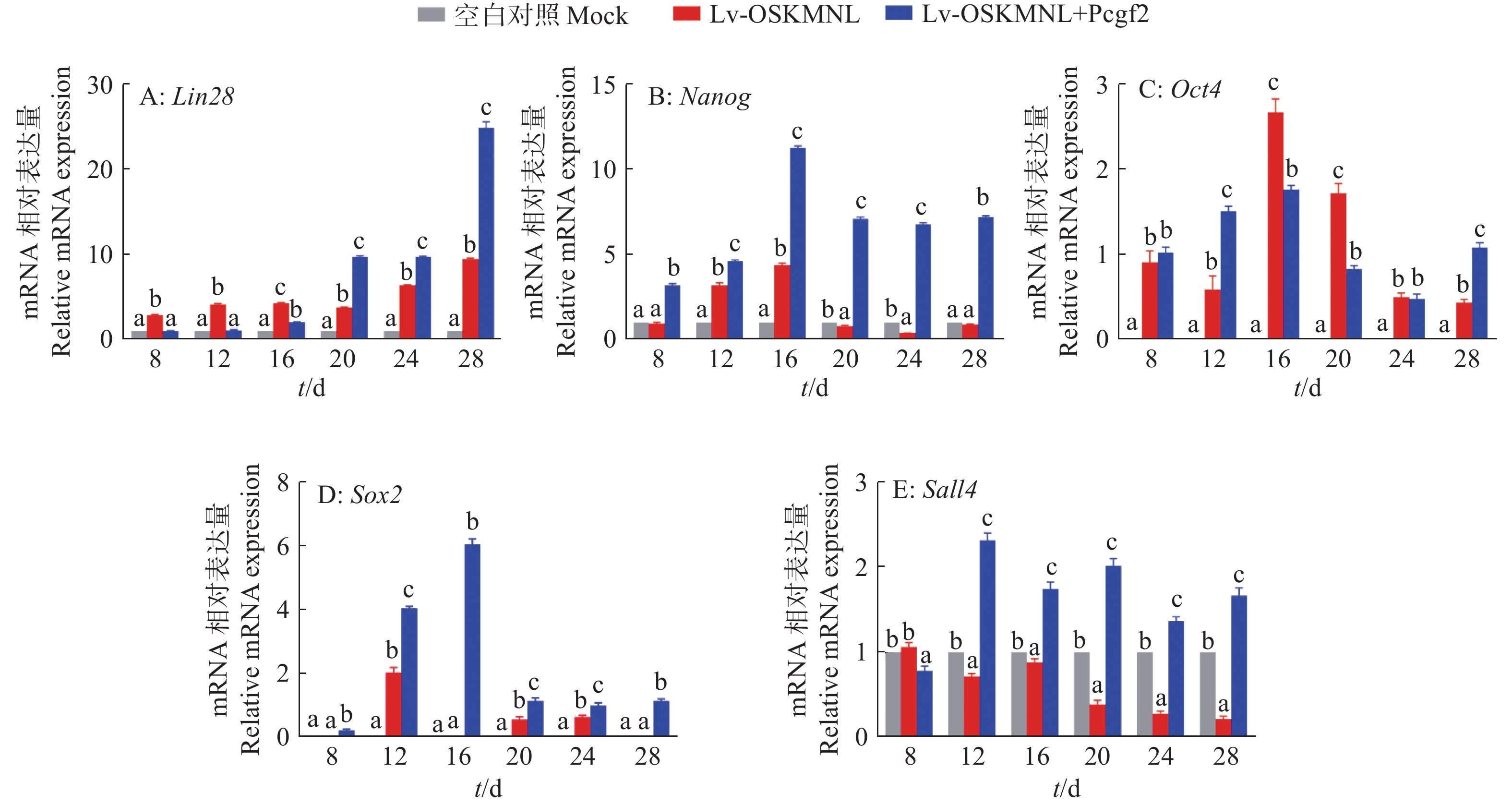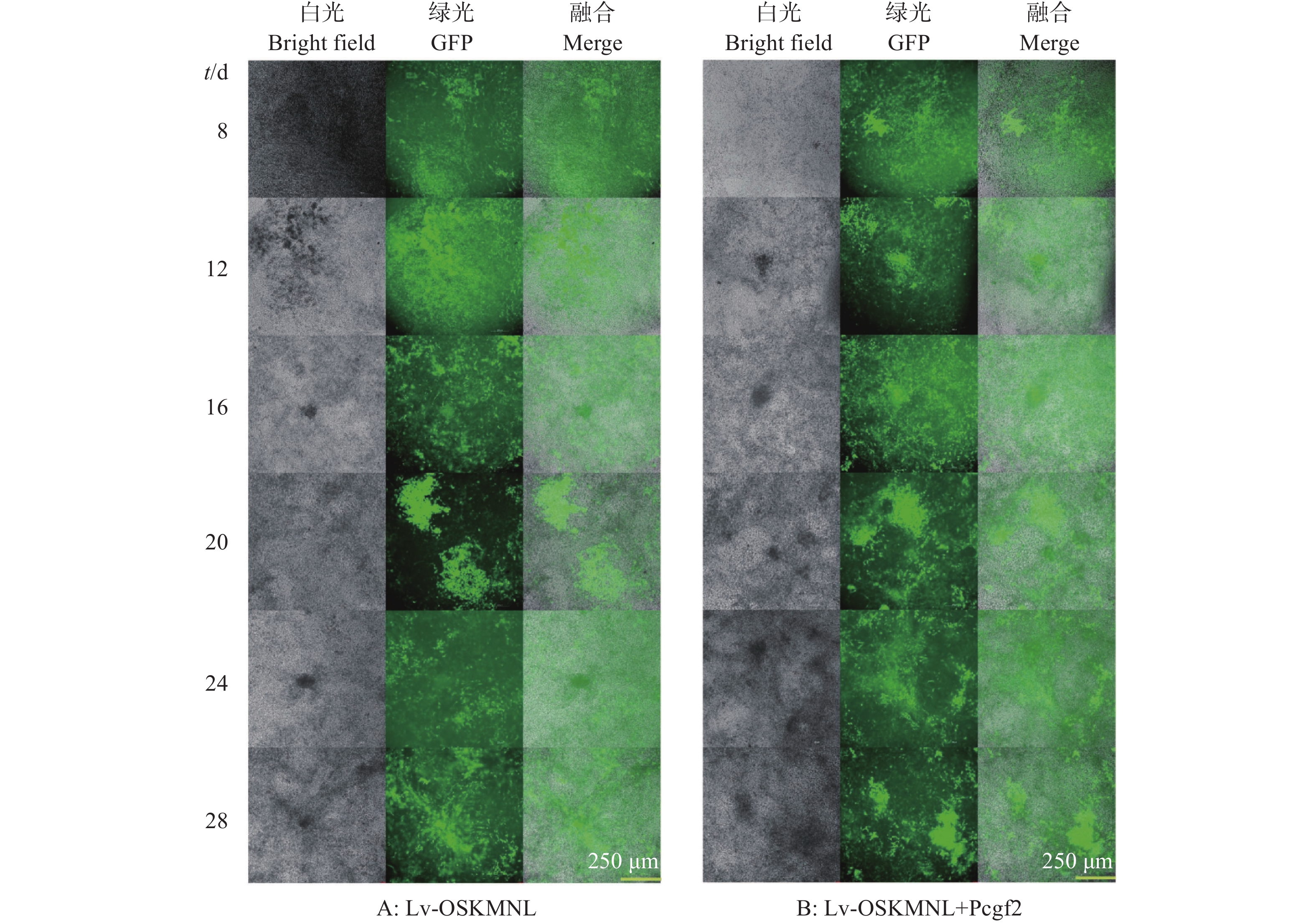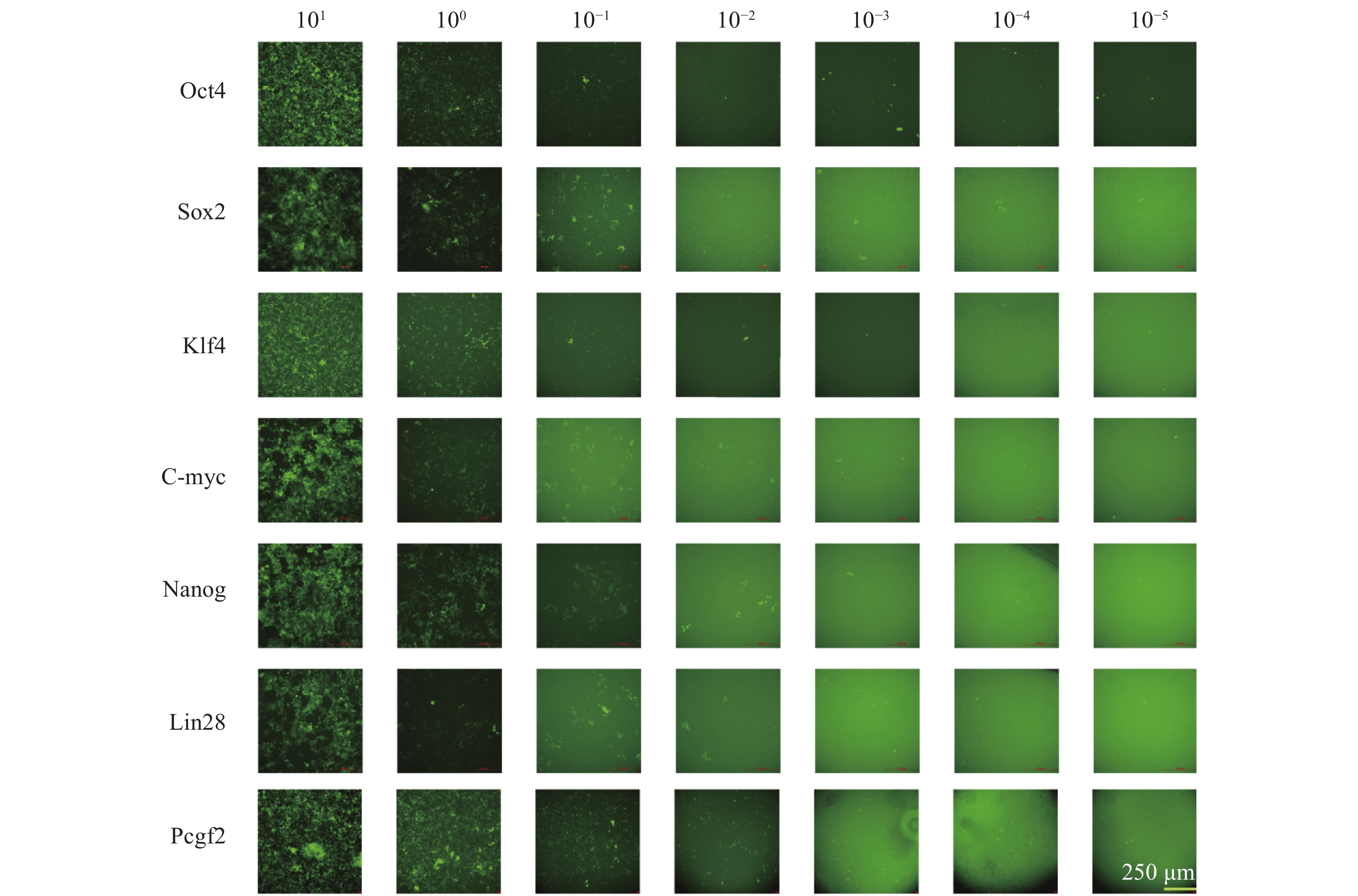 Method Six conventional reprogramming factors including Oct4, Sox2, Nanog, Lin28, C-myc and Klf4 as well as Pcgf2 gene were amplified and reconstituted with lentiviral vectors as lentiviral plasmids using chicken early embryos as templates. After packaging the lentivirus and measuring the corresponding viral titers, chicken embryonic fibroblasts were infected in groups and stem cell markers were assayed during the induction process.