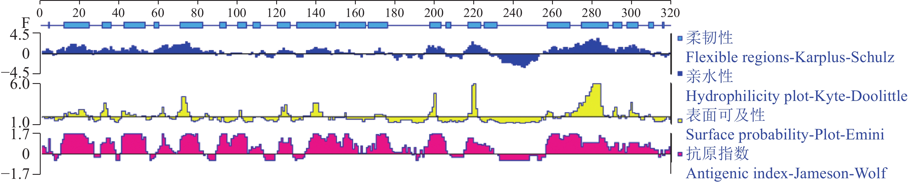 Result Bioinformatics prediction showed that AMA1 protein was composed of 317 amino acids, and its molecular formula was C1512H2310N394O490S14, which was an unstable hydrophilic protein. The secondary structure prediction of the AMA1 protein yielded a profile consisting of 17.74% α helix, 30.65% β folding, 30.65% rotation, and 20.96% random coil. It was a transmembrane protein without signal peptide and had five B cell epitopes. At the same time, pET23a-AMA1 recombinant expression plasmid was successfully constructed, and the optimal induction expression condition was 0.2 mmol/L IPTG inducing for 12 h at 28 ℃, which mainly existed in the form of soluble protein. The relative molecular mass of recombinant protein was about 25 800, and the mass concentration of purified protein was 0.25 mg/mL.