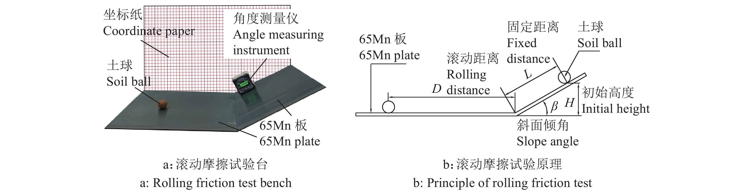 方法 基于Hertz-Mindlin with JKR接触模型建立三七种植土壤离散元模型并进行参数标定。首先,以土壤颗粒间及土壤−65Mn钢板间的JKR表面能、恢复系数、静摩擦系数、动摩擦系数为试验因素,以土壤堆积角、土壤在65Mn板上的滚动距离为评价指标。其次,采用基于Box-Behnken的响应面优化方法建立土壤堆积角、滚动距离回归模型。