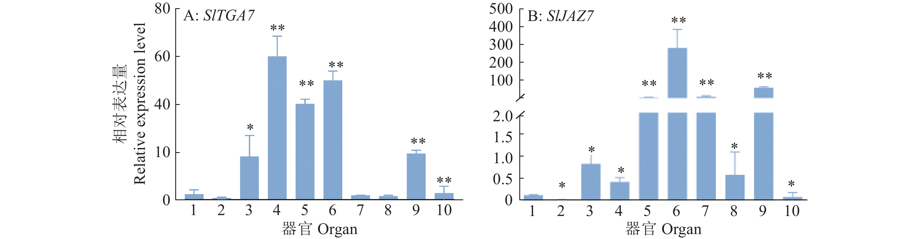 Method The resistance function of SlJAZ7 gene was determined by the phenotypic difference between wild type and transgenic tomato inoculated with Pst DC3000. RT-qPCR was used to analyze the tissue-specific expression of SlJAZ7 gene and SlTGA7 gene under Pst DC3000, methyl jasmonate (MeJA) and salicylic acid (SA) treatments. The subcellular localization of SIJAZ7 and SlTGA7 proteins was studied by transient expression of tobacco. The interaction between SlJAZ7 and SlTGA7 was verified by Y2H, BiFC and pull down experiments, to verify the disease resistance function and possible mechanism of SlJAZ7.