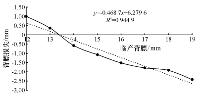 This study was aimed to evaluate the effect of backfat loss on reproductive performance of sows from the first parity to the second parity. The backfat loss were determined and reproductive performance differences were analyzed. The results showed that the total litter size of sows decreased significantly when the loss of backfat was more than 2 mm from the first parity to the second parity. Linear regression analysis showed that the backfat of first parity parturition sows should not exceed 18 mm.